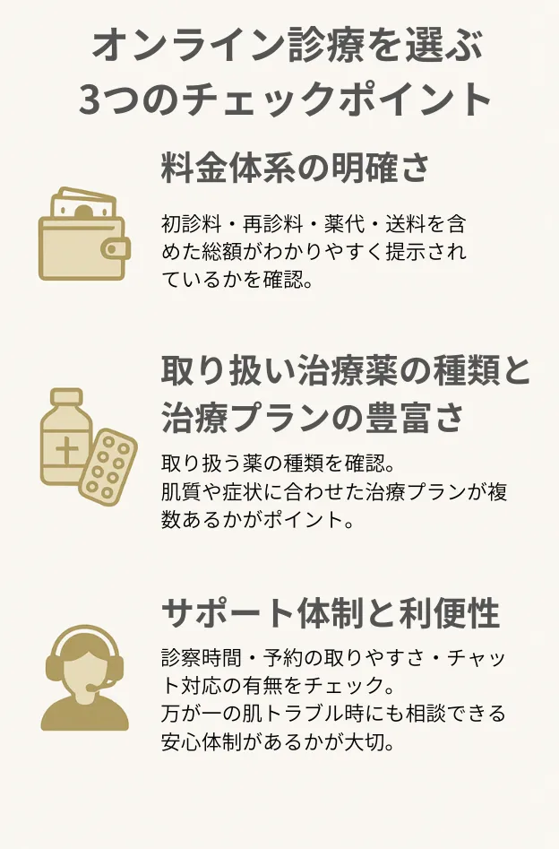 オンラインニキビクリニックを選ぶべき3つのポイント